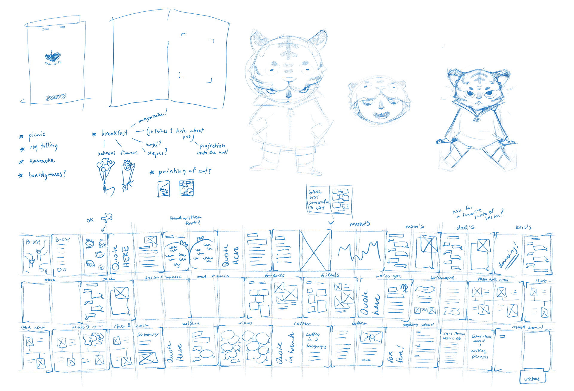 Content Gathering – drafting fun and personal questions, creating a submission form, and testing how different types of contributions (notes, doodles, photos) could fit into a publication format.