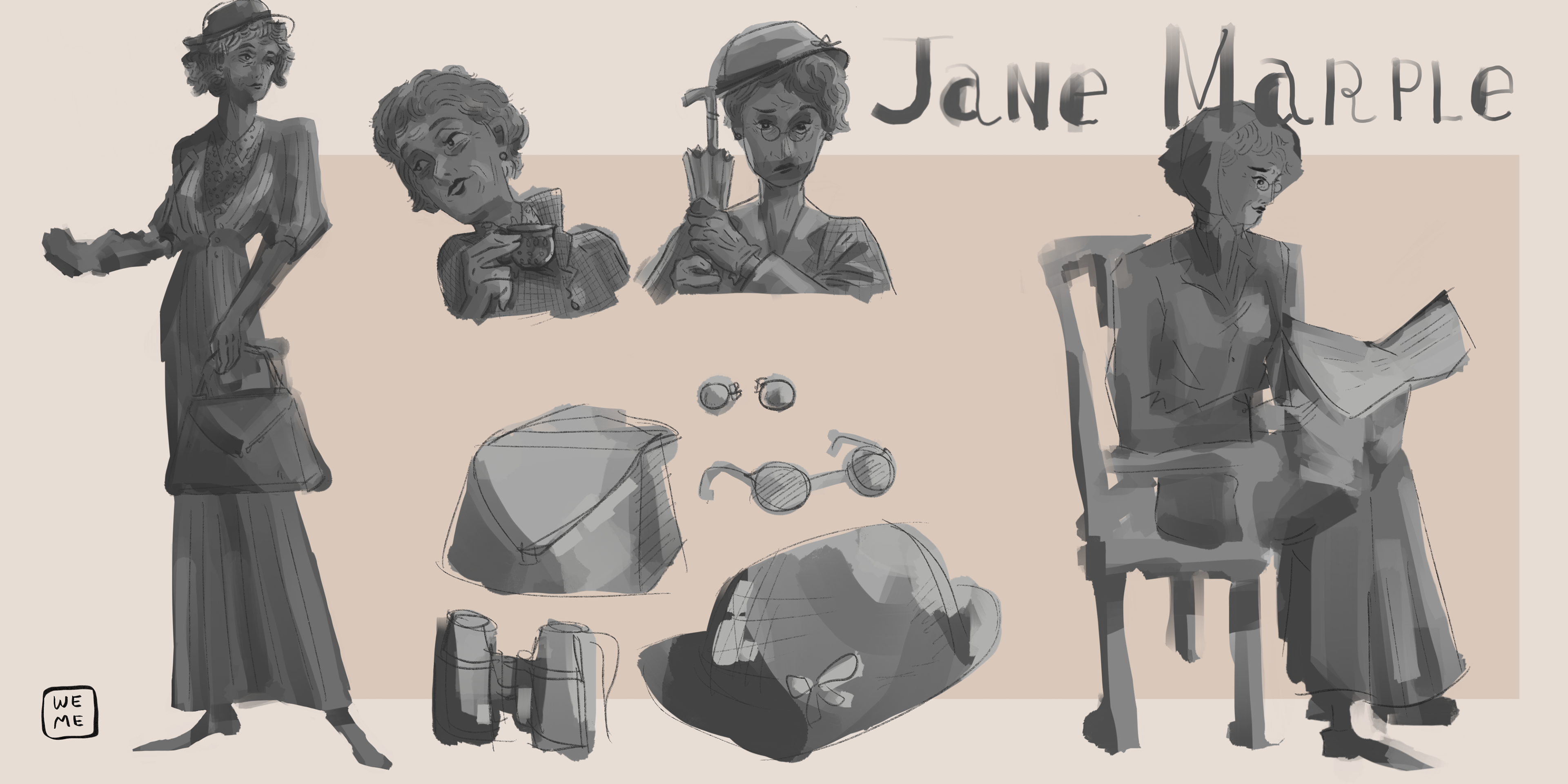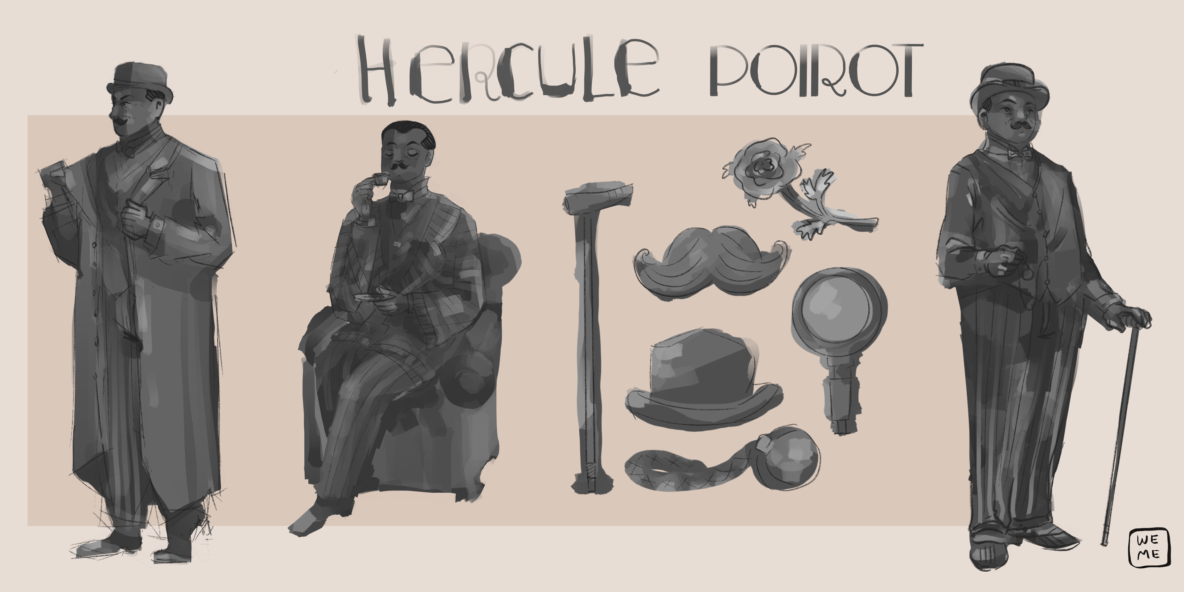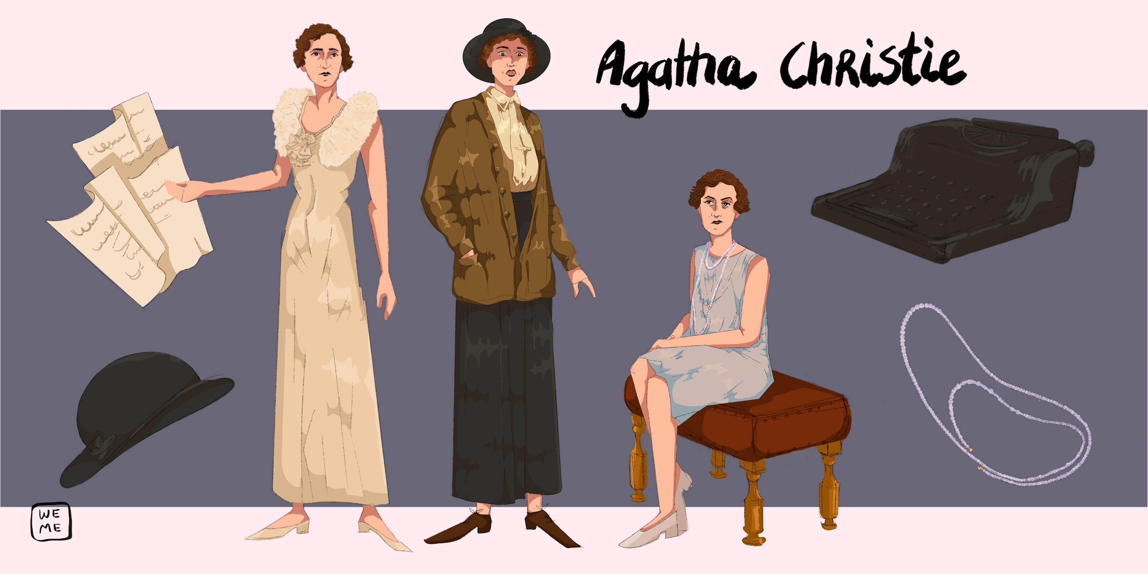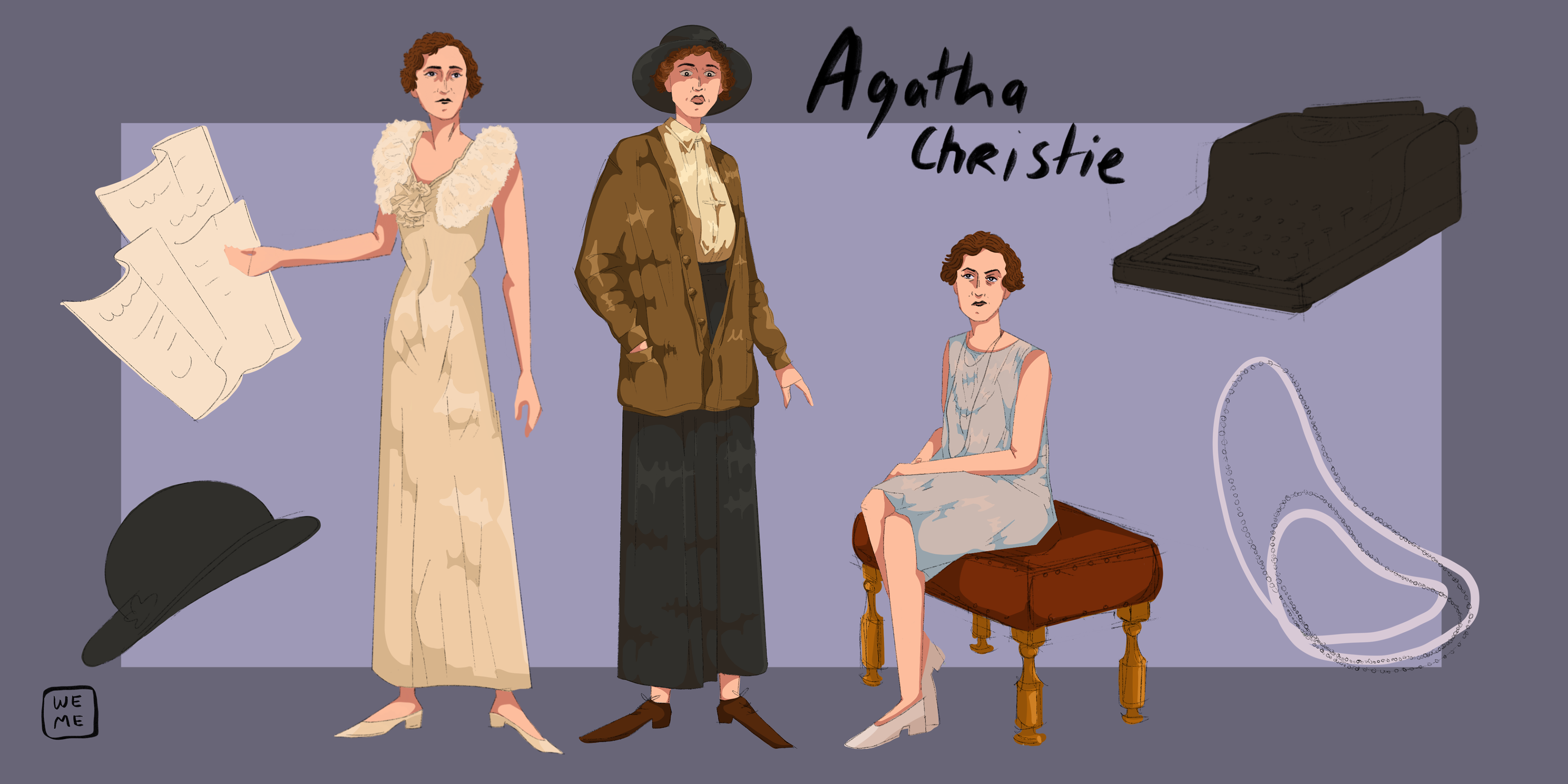 Character Design: Illustrating Agatha Christie and her famous book characters