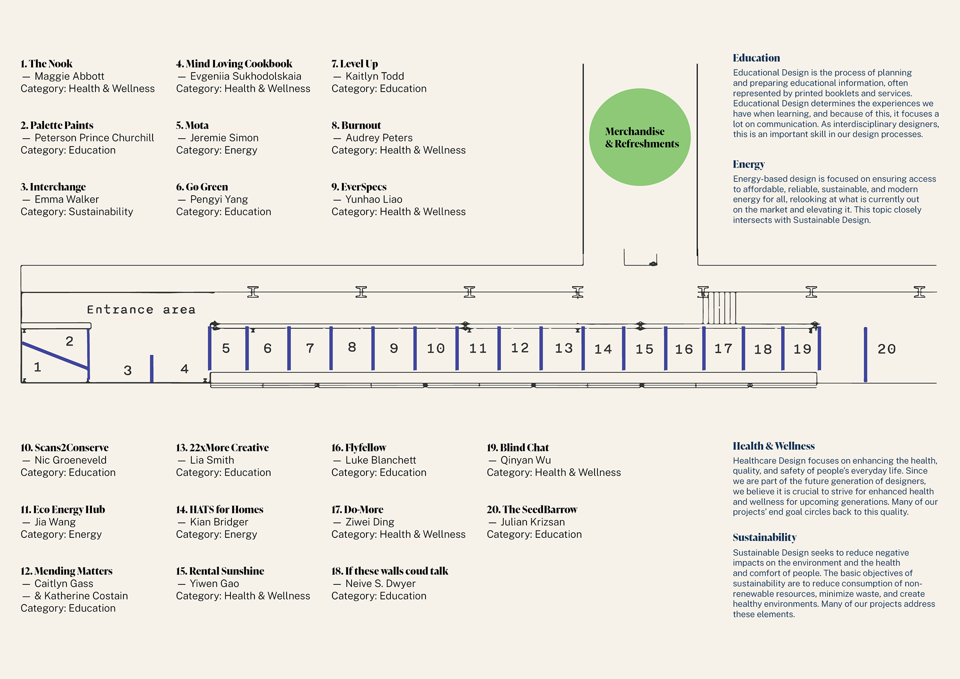 I also designed and produced postcards and an event map featuring project information and event details. These materials helped promote the exhibition within the community, attracting more visitors while providing attendees with a clear guide to explore every part of the event.